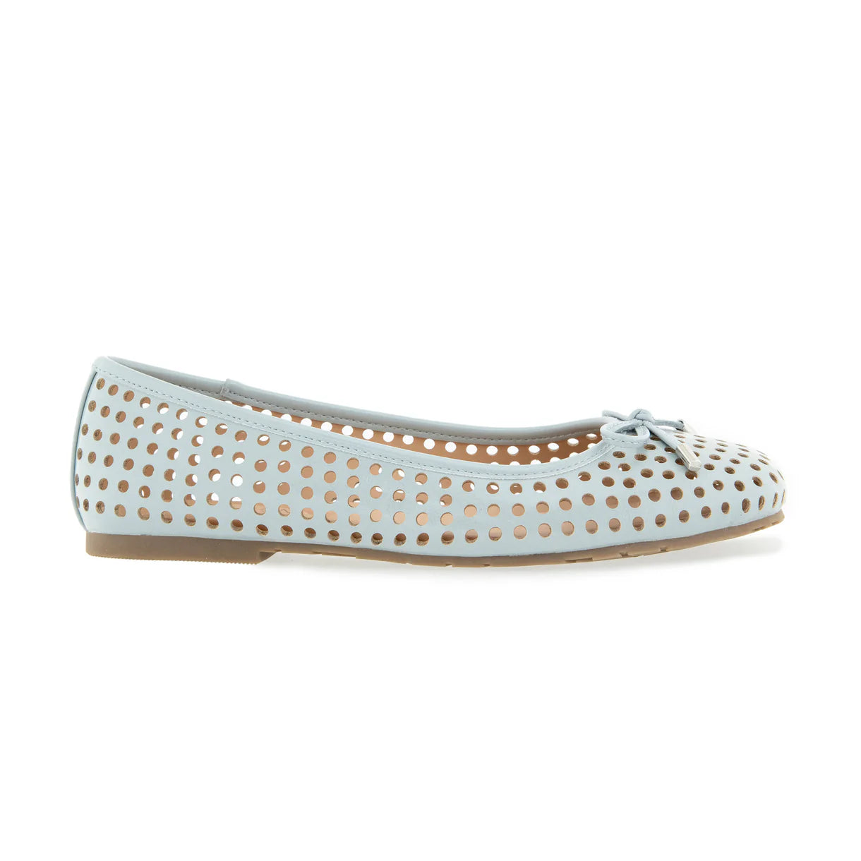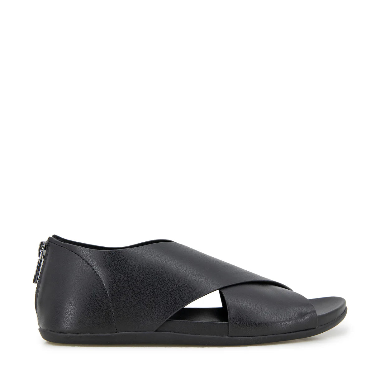 Elevate your style with these sleek flats, featuring a modern open-toe design and a bold metallic accent. Leather metal ring...
