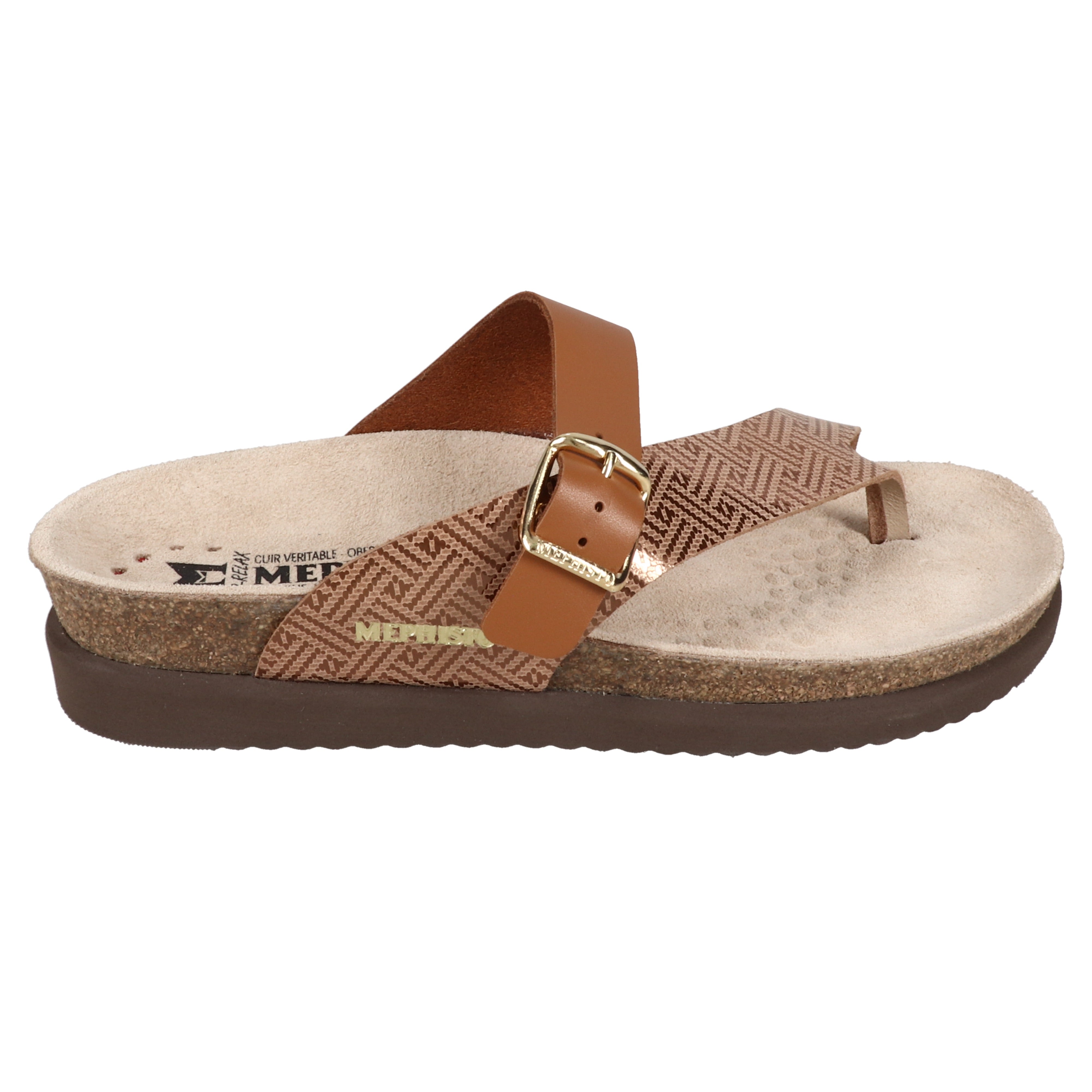 MEPHISTO HELEN | Women's Cork Sandals Metallic Leather. This marvelously lightweight ladies' toe post sandal, with its relaxed look, promotes a...