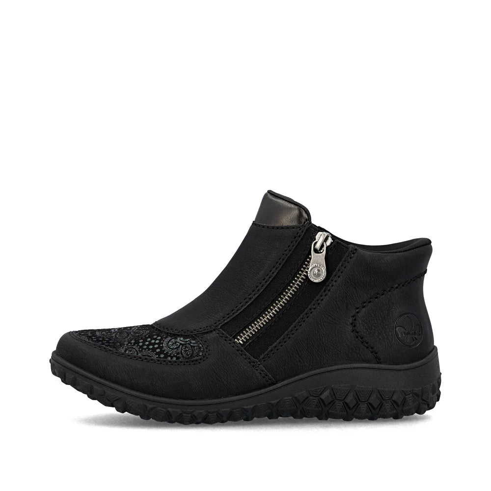 Allrounder! This Rieker ankle boot is not just any slipper...! A zipper allows for quick and easy donning. The grippy...