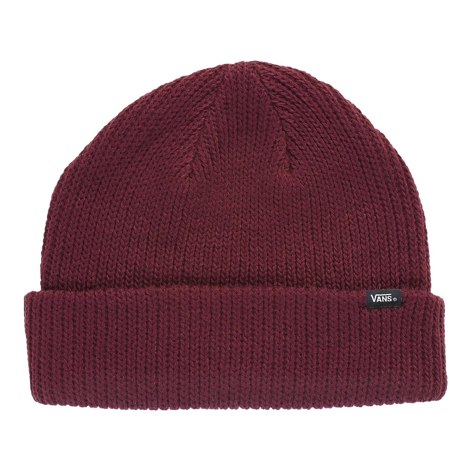 The 100% acrylic knit Core Basics Fold-Brim Toque features a sewn-in Vans label on the brim.