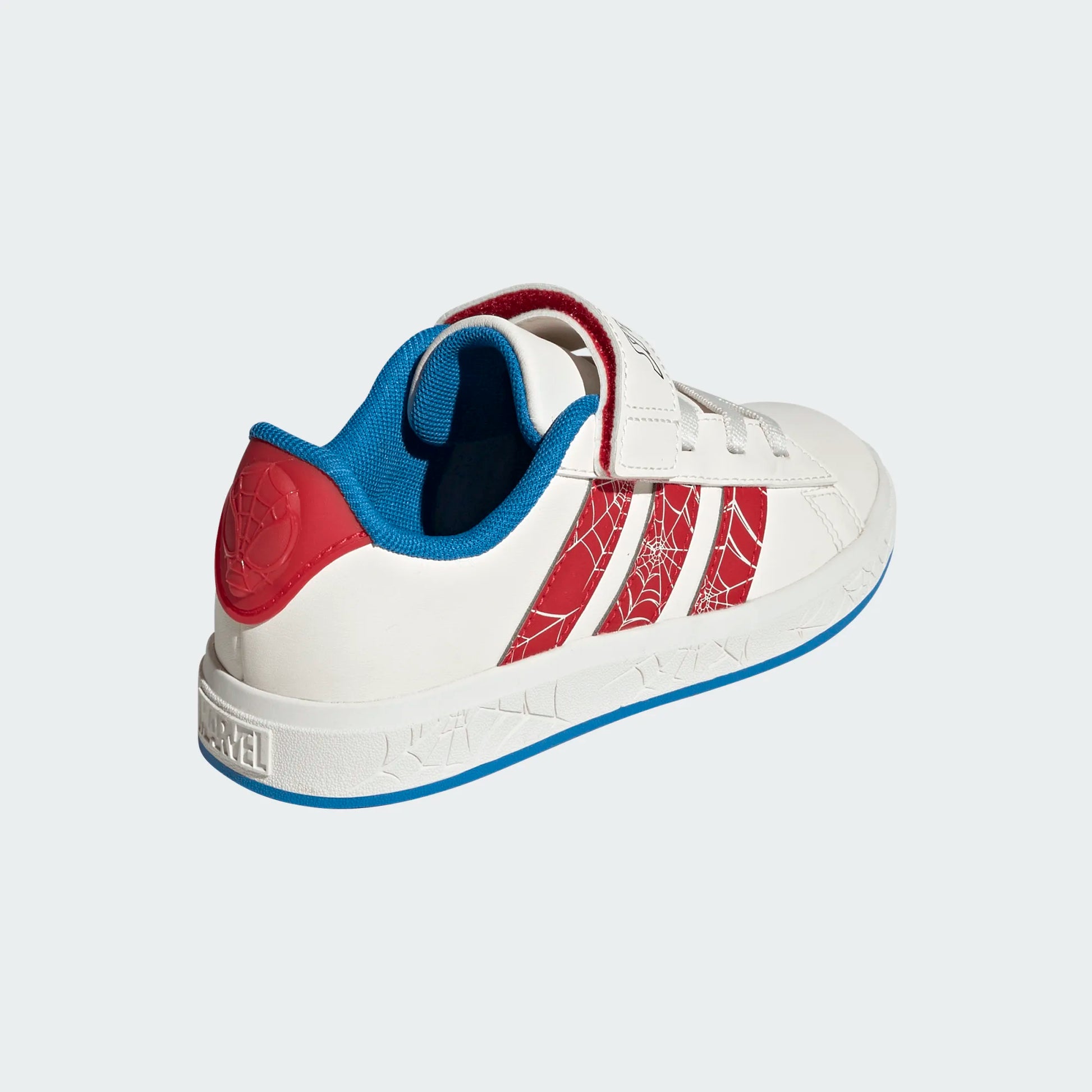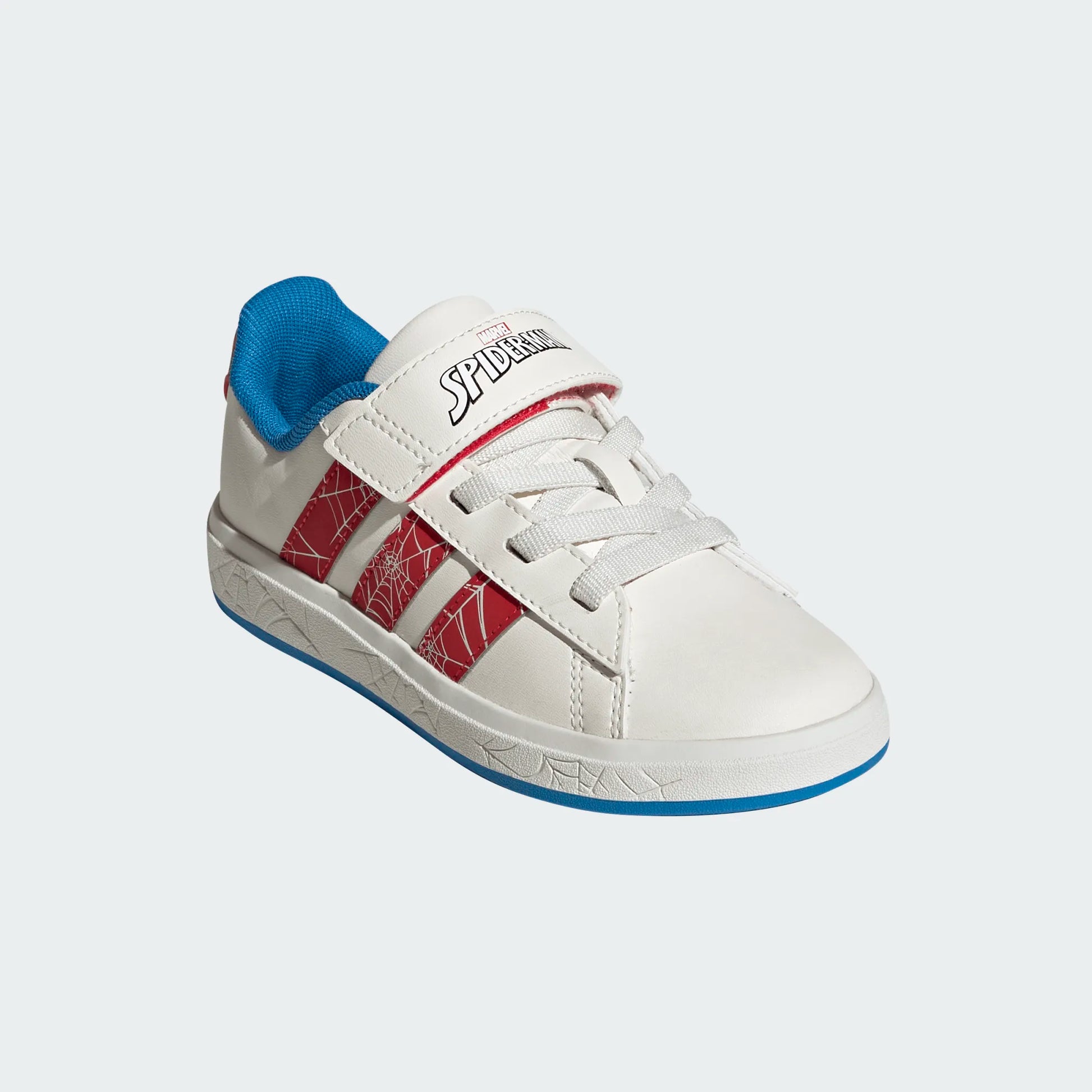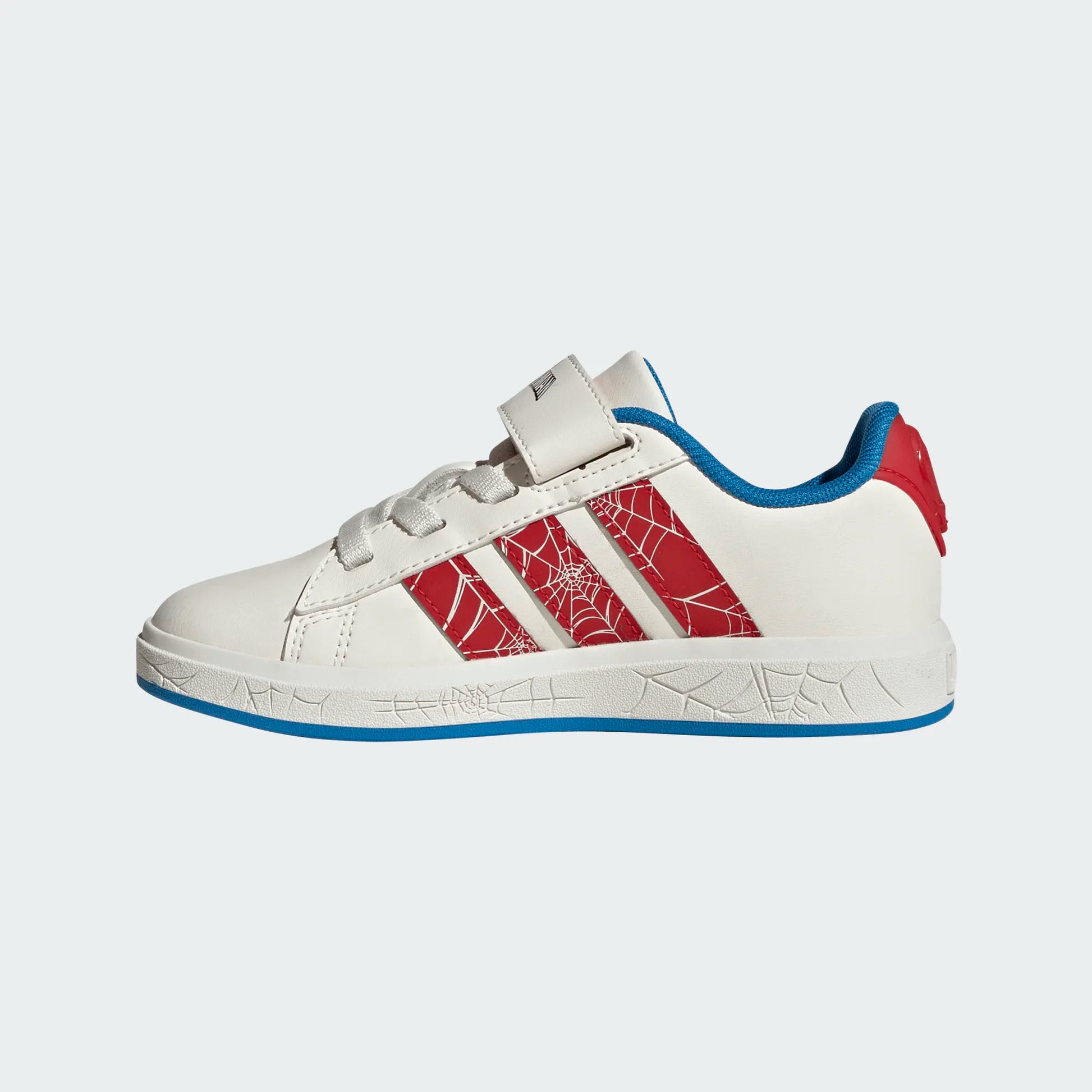 Swing into action with the adidas Marvel Spider-Man Grand Court Shoes for kids. Perfect for street and play, these shoes feature a Spider-Man head on the sidewall and classic Spider-Man colors, making them a hit with young fans. The elastic laces with a top hook and loop strap ensure a secure fit, while the rubber cupsole with Spider-Man design provides added support. Stitched on 3-Stripes and a linear adidas logo complete the timeless look.