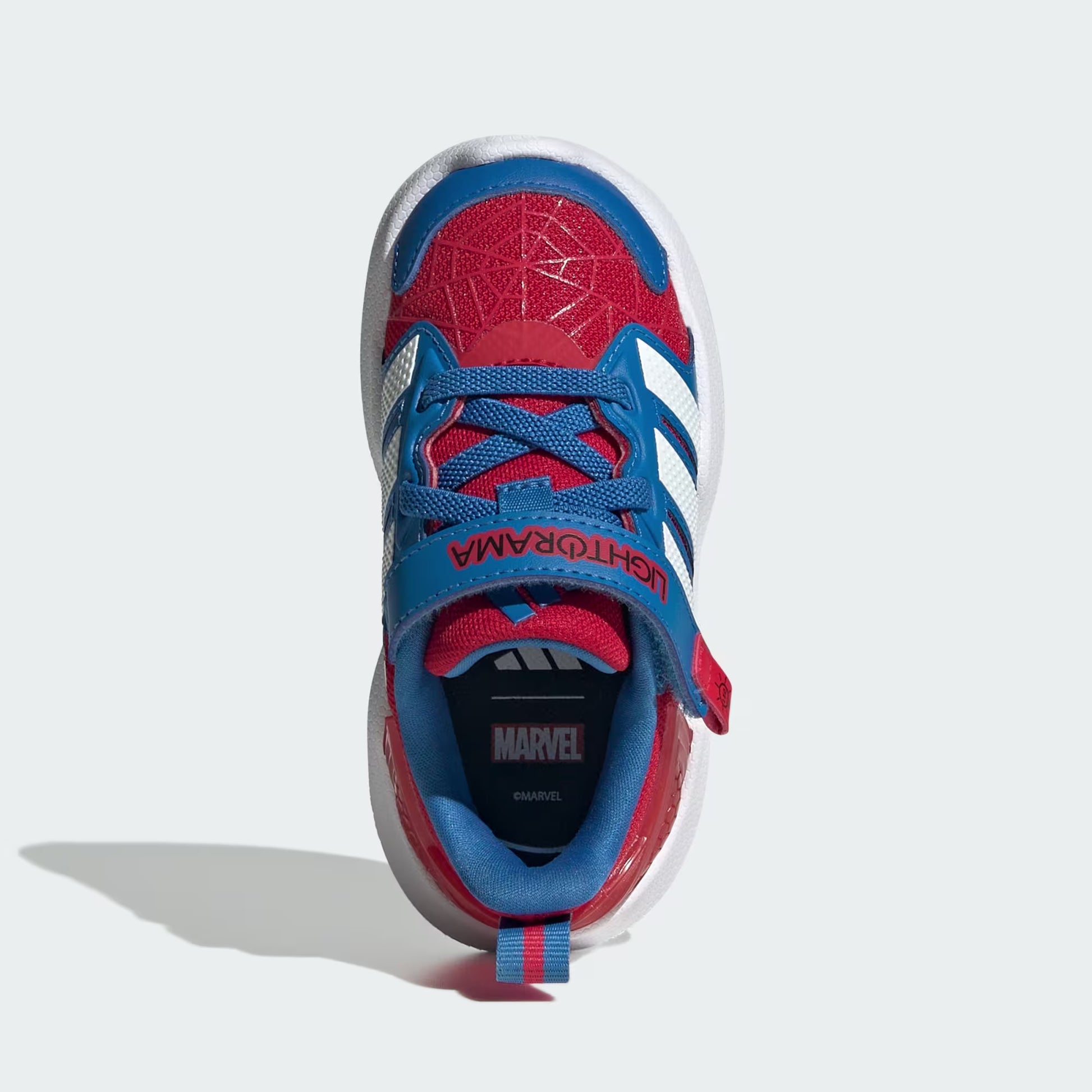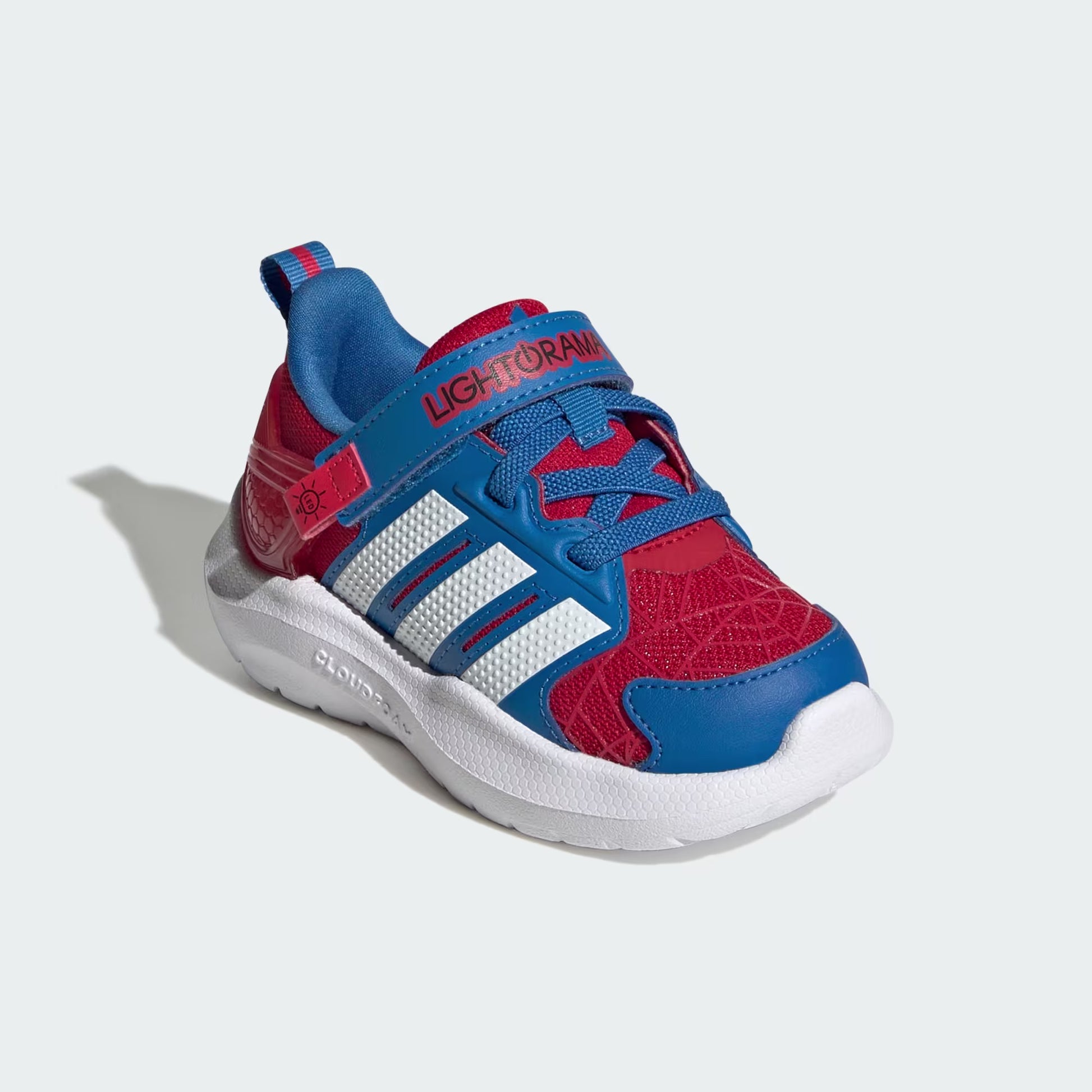 The adidas Marvel Lightorama Spider-Man Shoes are designed to bring excitement and adventure. Featuring a blinking Spider-Man eye on the heel, they're great for little ones who love to play and explore. With a sporty silhouette and lightweight EVA outsole, they offer comfort and ease of movement. The elastic laces and hook-and-loop closure provide a secure fit while making it easy for parents to put on and take off. The Cloudfoam technology provides a holistic comfort experience from step-in to stride, designed for an ultra-soft step with extra cushioning. Let your little superhero enjoy adventure with these stylish, playful shoes.