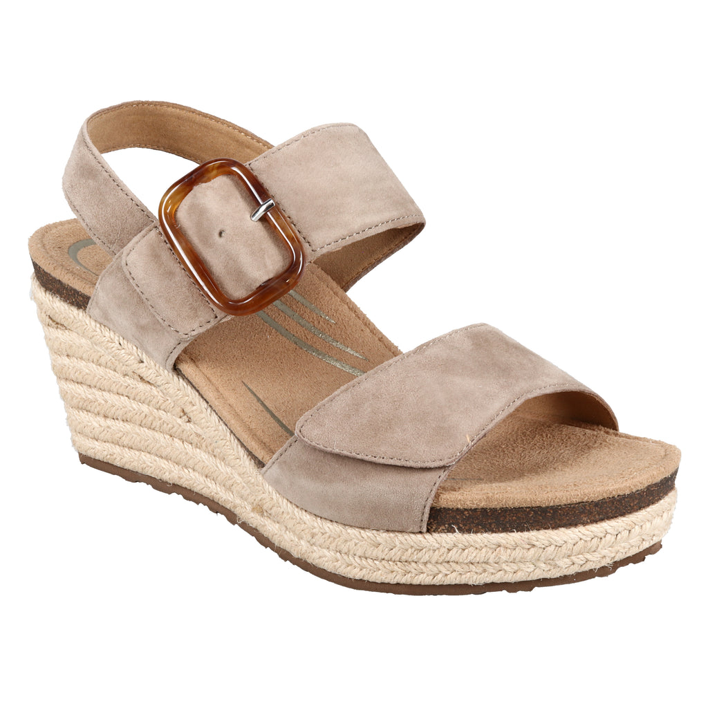 Discover the perfect blend of comfort and chic design with the Ashley. These genuine leather wedges with arch support feature a detailed buckle accent, a memory foam footbed, and hook & loop closures for a secure fit. Make a statement wherever you go and step confidently in the Ashley.