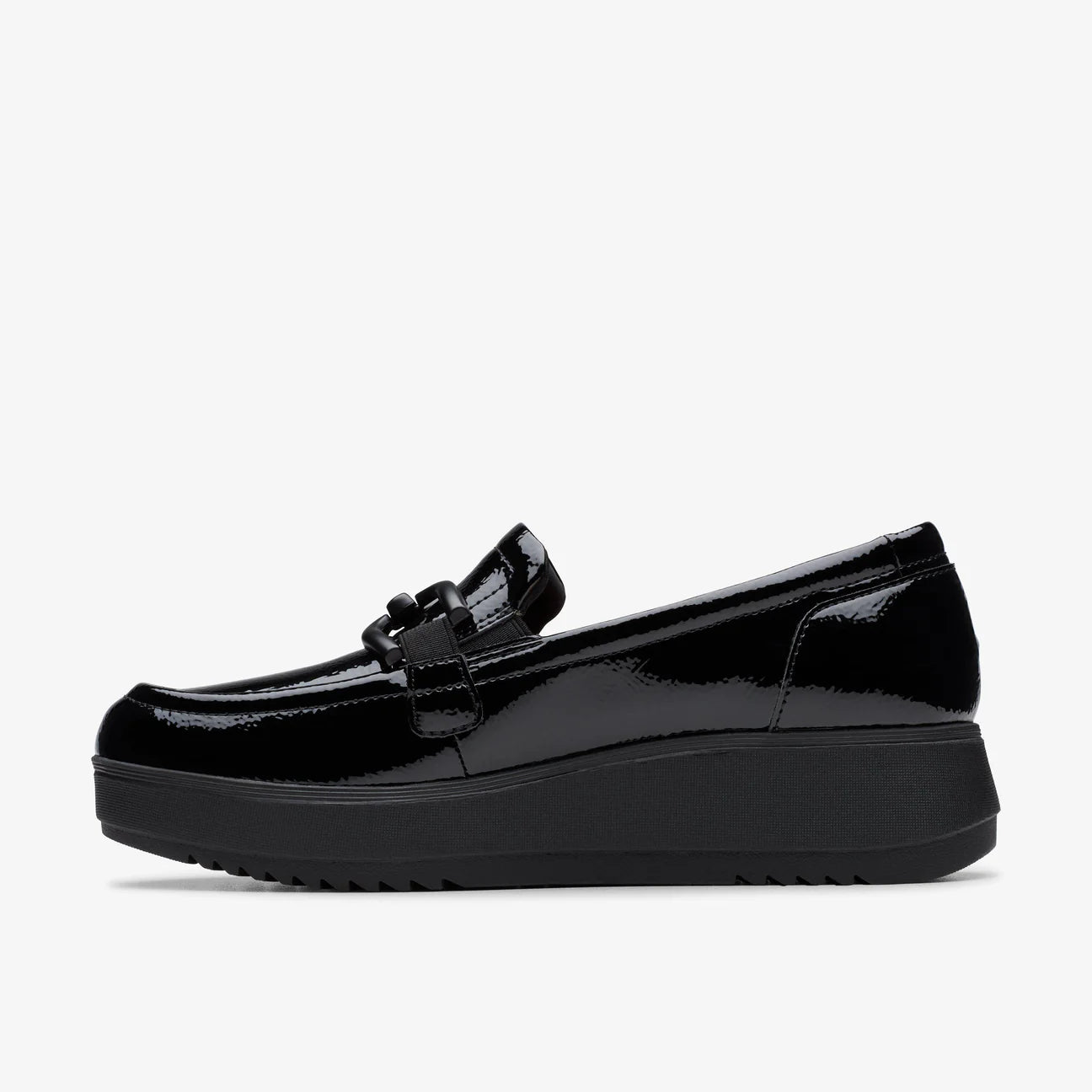 Be bold in the Clarks Zylah Top women’s loafer. With a fashionable chain that adds character and a comfortable foam footbed to cushion, these loafers combine comfort with chic. The padded collar gives additional support during wear enhancing movement. Uppers: Leather Lining: Synthetic Sole: Man-Made Width Fit: Standard Heel Height: 6.35cm Fastening: Slip On Removable