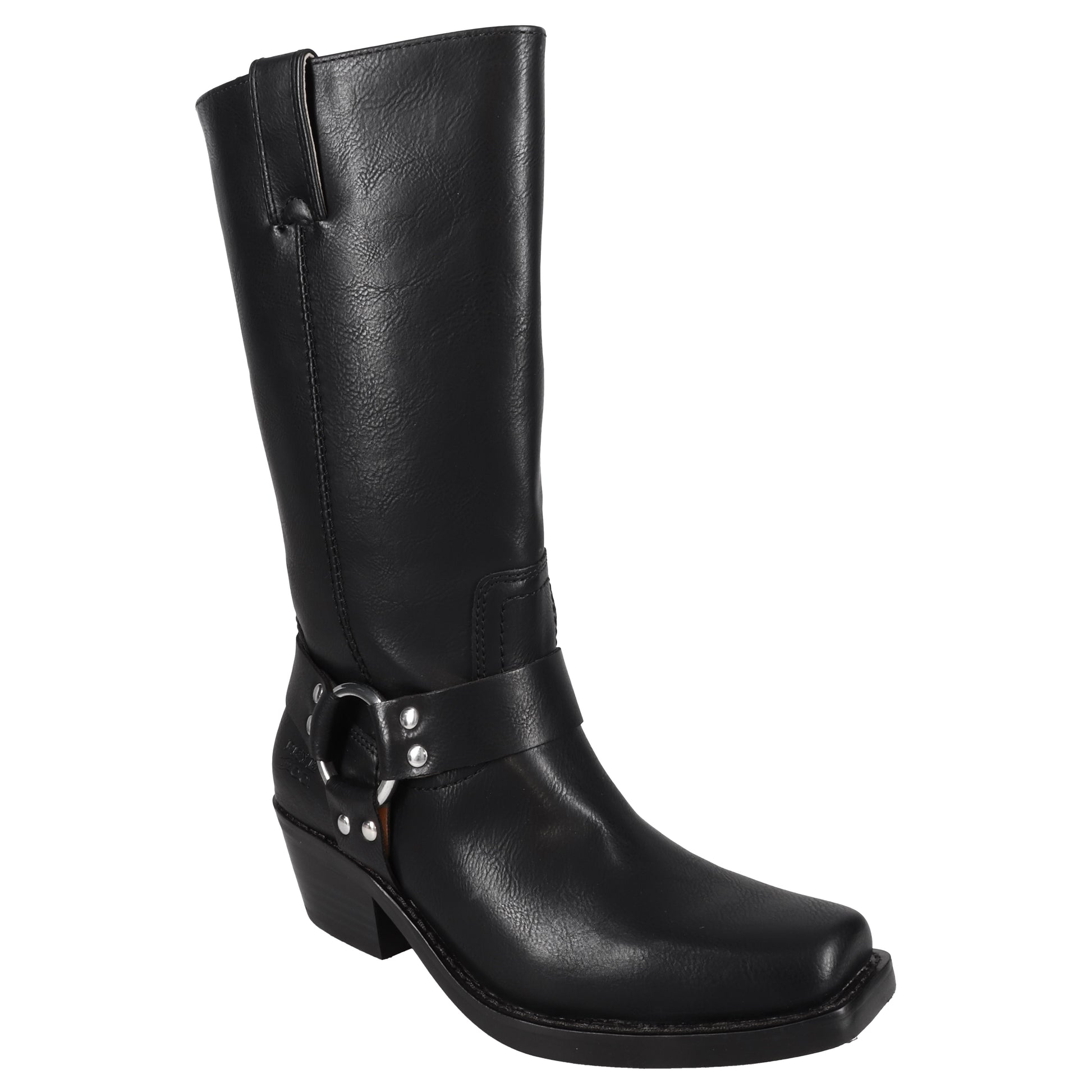 Add some edge with the Lorrie Harness boot. Featuring bold harness hardware and a soft, cushioned insole for out of the box comfort, these vegan leather boots boast a leather stacked heel with a durable textured outsole. Pair effortlessly with distressed denim or a leather jacket for a daily dose of cool.