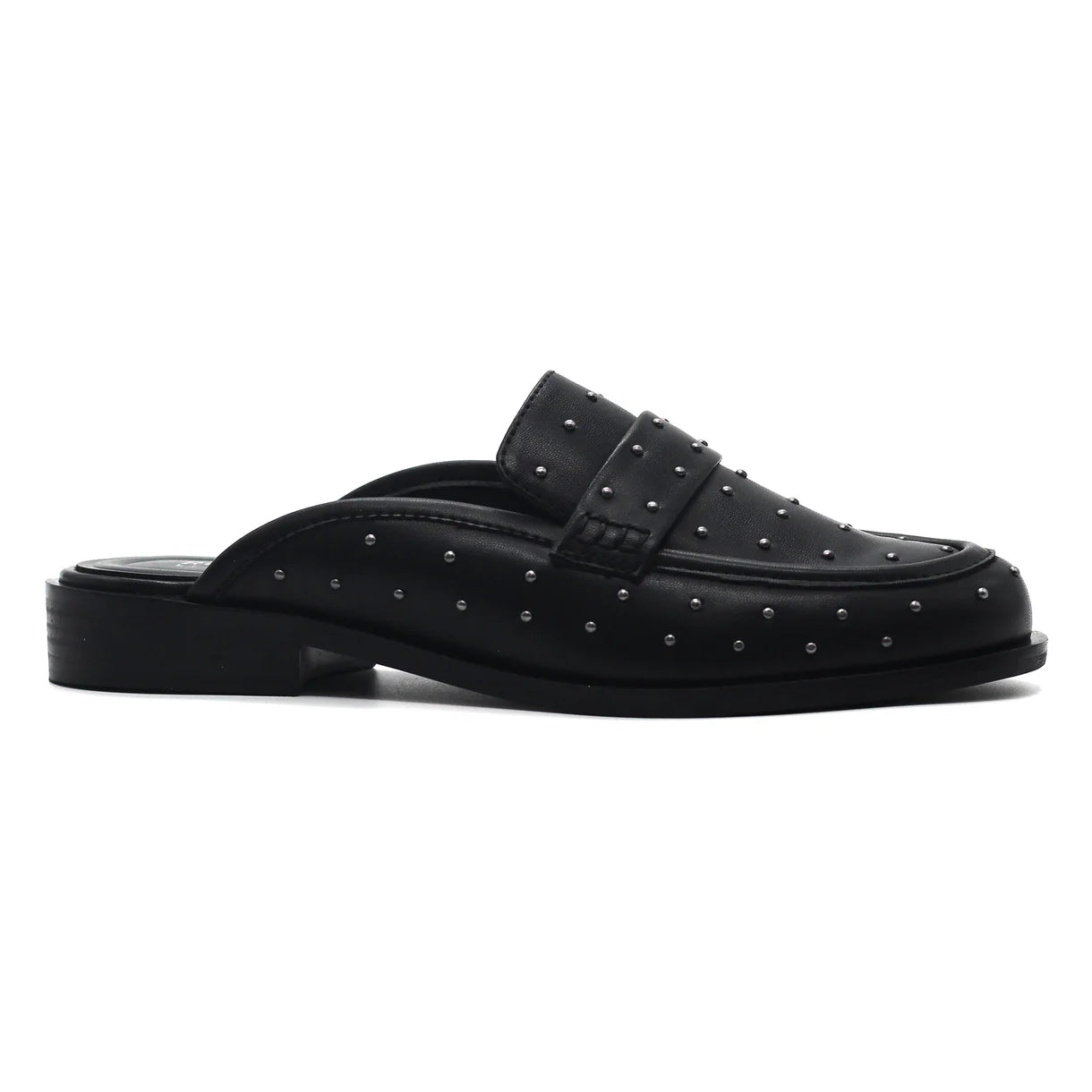 Meet your new statement flat: the Elmhurst Slip-On Mule. Equal parts edgy and effortless, this modern silhouette brings instant attitude to any look with its studded upper and clean, backless design. Slip into something bolder—whether you're dressing up denim or adding a spark to tailored pieces, Elmhurst does it all with downtown polish.