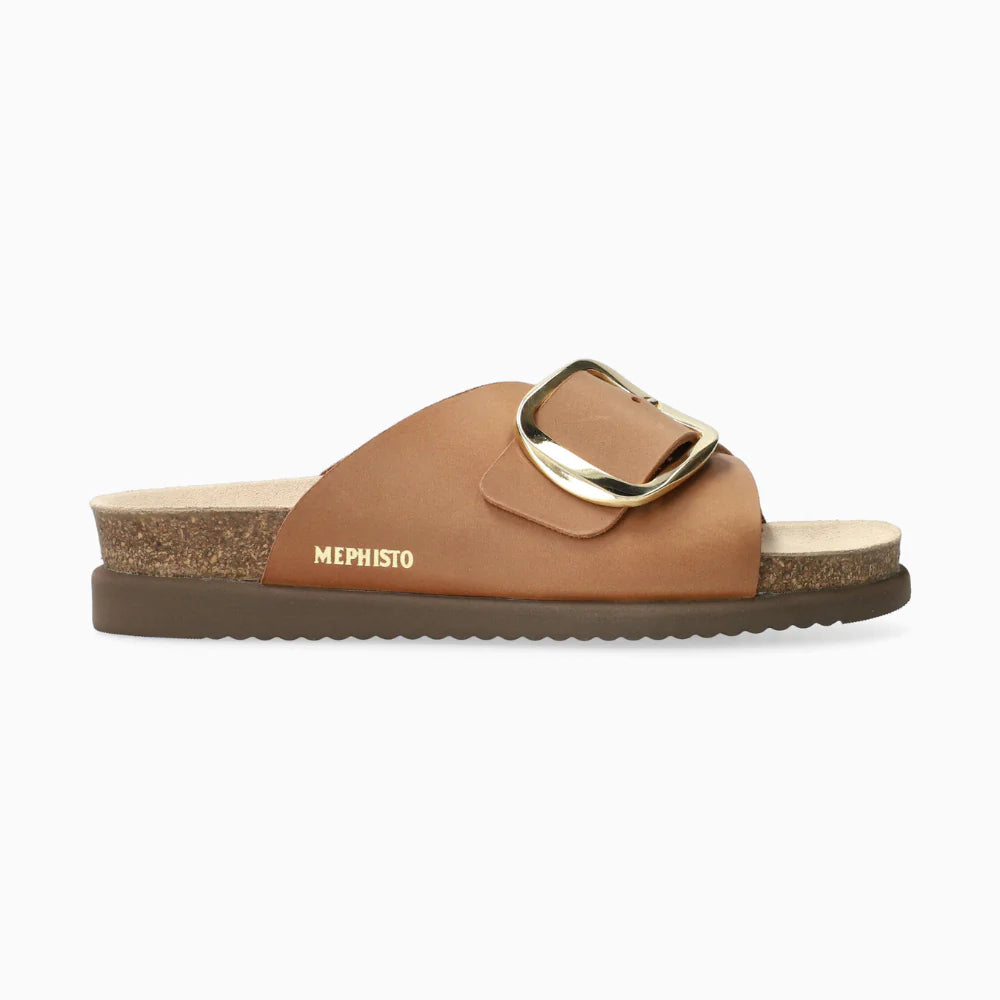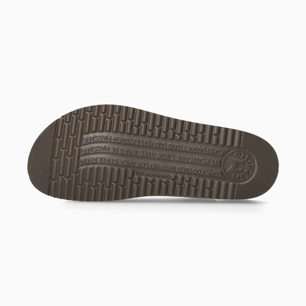 MEPHISTO HARIANA | Women Cork Sandals. This slide has a casual look that gives you a perfect feeling of well-being. The unique SOFT-AIR technology integrated into the cork midsole ensures fatigue-free walking. AIR-RELAX technology respects the anatomy of the foot to prevent arch collapse. Adjustable strap with buckle closure. This white slide for women is made of smooth leather.