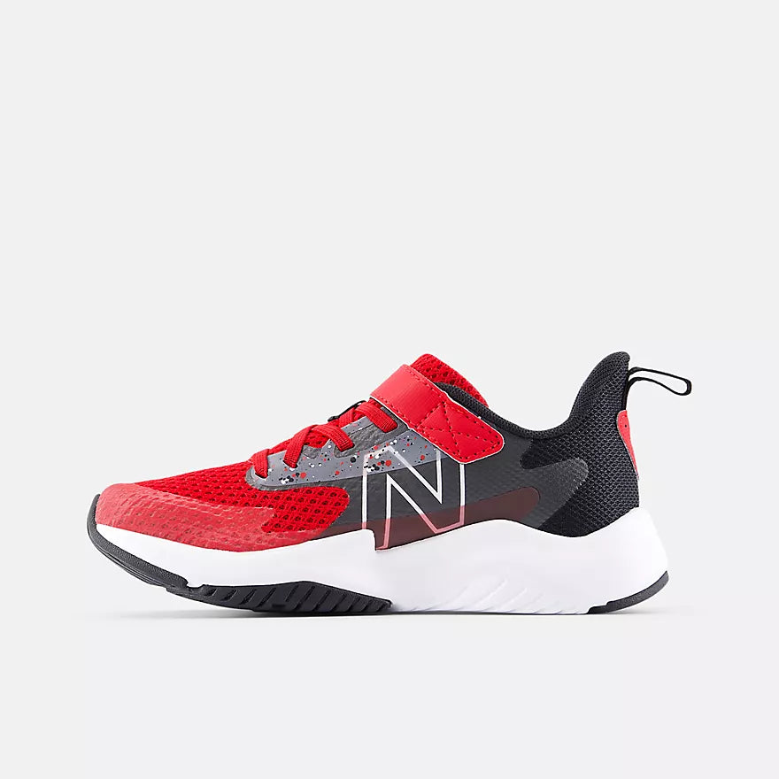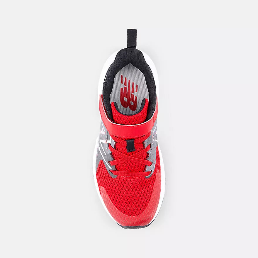 The bold New Balance Rave Run v2 Bungee Lace with Hook and Loop Top Strap kids’ running shoe delivers plush comfort with a cool, youthful vibe. The mesh and synthetic upper is lightweight and breathable, featuring a no-sew tip for durability and no-sew saddle for midfoot support. Underfoot, an IMEVA midsole offers cushioning for everyday comfort paired with a durable rubber outsole to support all-day play. An alternative closure allows for quick changes that won't slow active kids down.