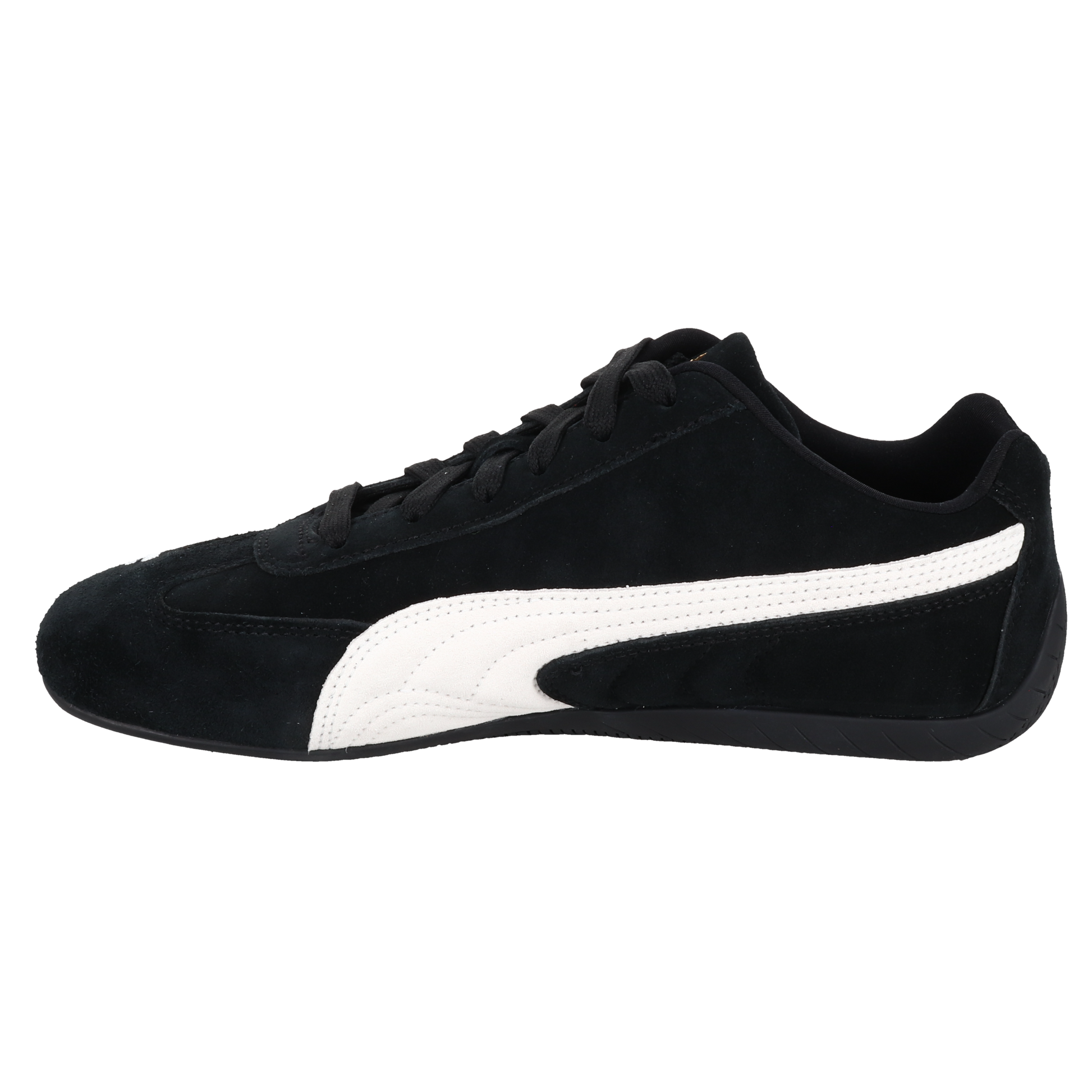 An icon of racing culture, the PUMA Speedcat has been synonymous with speed, precision, and unparalleled performance for over 25 years. It originated as a fireproof Formula 1® footwear style, but over the decades it found itself on a new circuit – transcending the tracks of Monaco for the streets of global fashion capitals. Wrapped in soft suede and premium leather, this silhouette is reissued in its original red and black colorways with a new PUMA Cat Logo at the front.