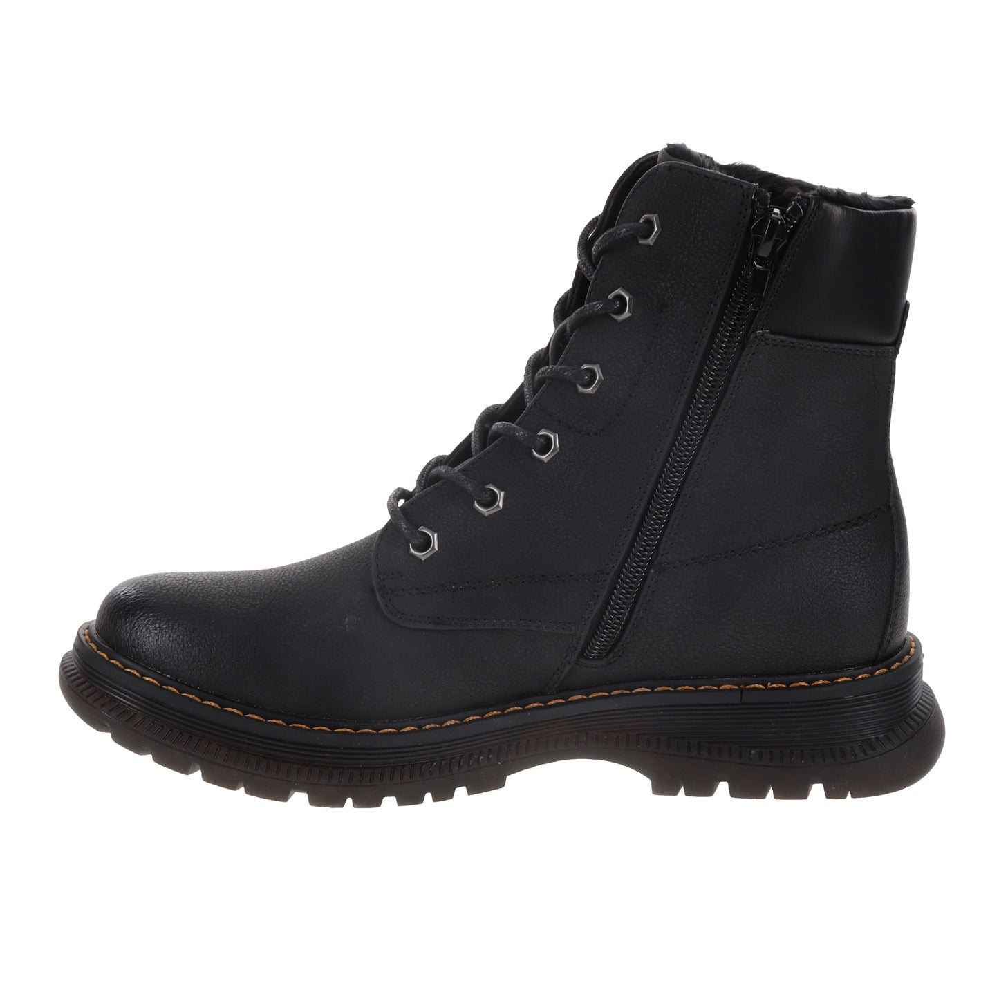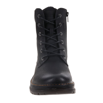 The Peyton 01 wine waterproof combat boot from Romika is the stylish combat boot that you have been looking for, goes well with all different kinds of outfits and adds the flare you seek. Featuring a vegan friendly upper with Tex membrane waterproof construction. Stitch detailing with lace up styling for a secure fit. Inside zipper for an easier on and off. Cemented TPR outsole.