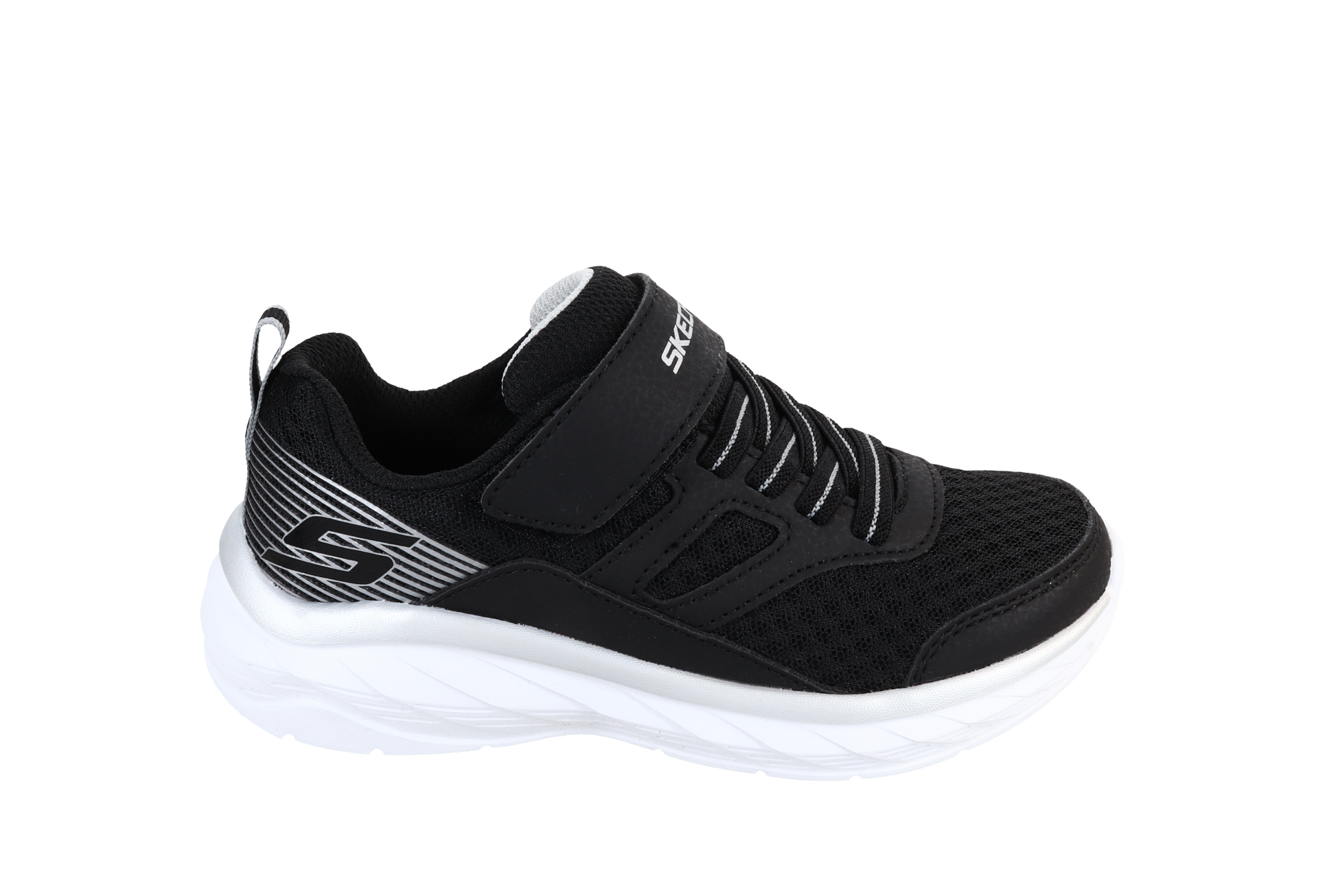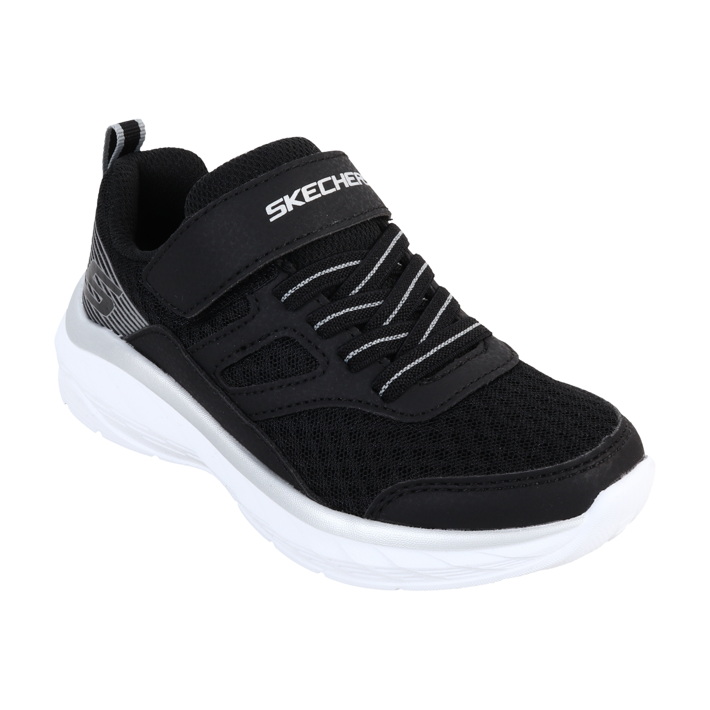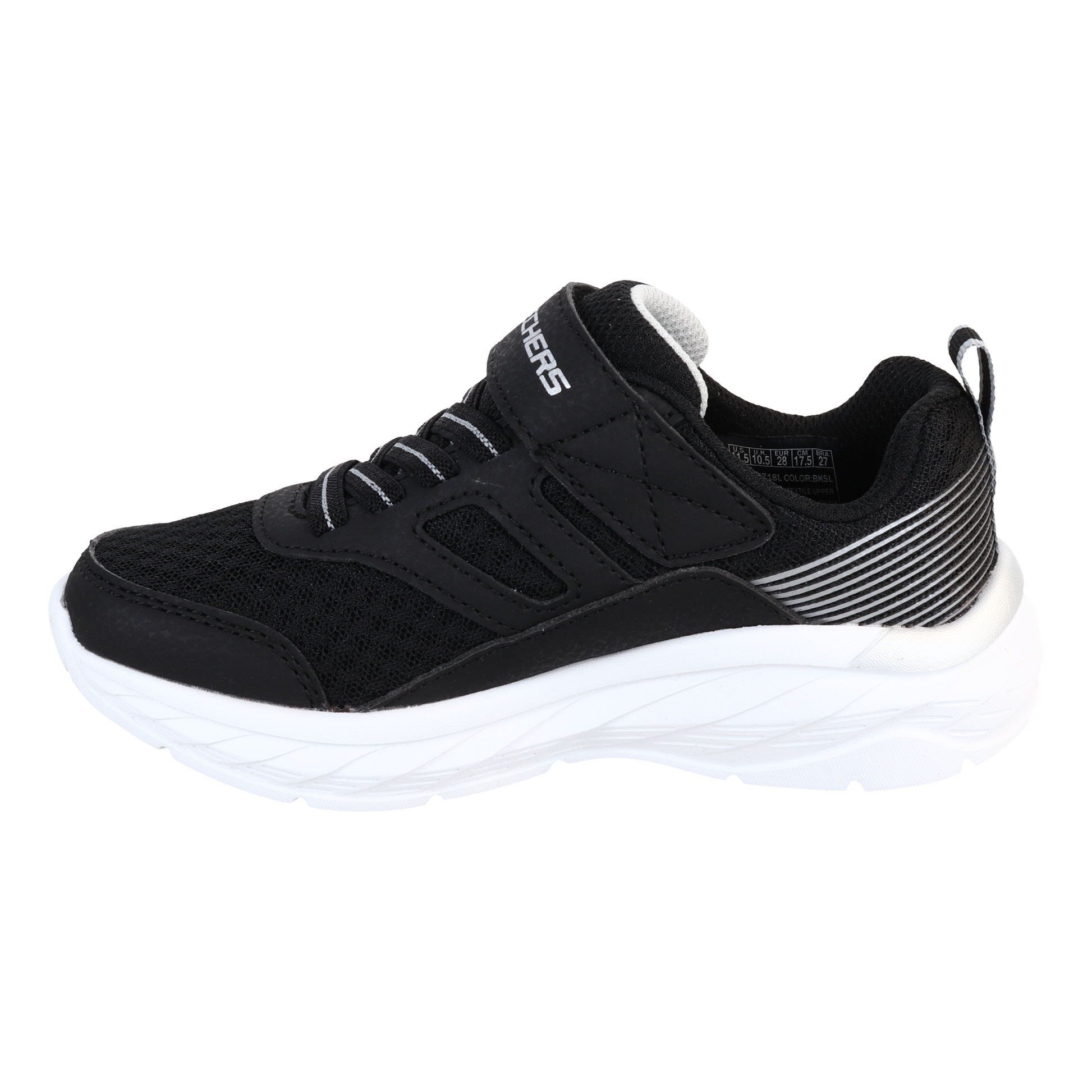 Stay comfy all day long, from school to weekends at the playground, in Skechers Boundless. This lightweight sporty sneaker features a synthetic and mesh upper with stretch laces, Skechers Adaptive Closure, and a cushioned comfort insole.