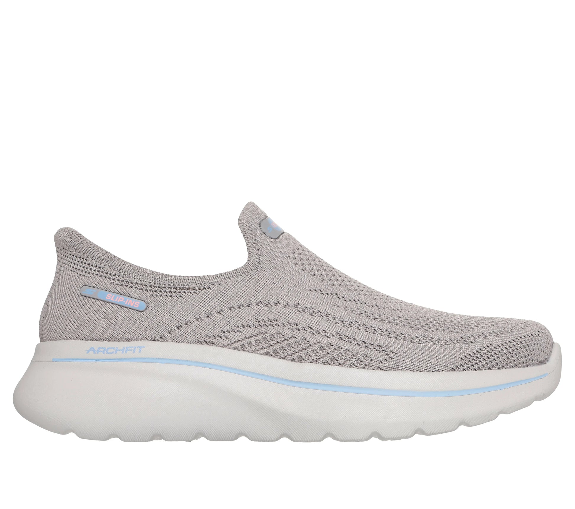 Love the support in your everyday walking style wearing Skechers Hands Free Slip-ins®: GO WALK® Arch Fit® N-Joy - Arianne. Designed with our exclusive Heel Pillow™, this vegan walking slip-on has been granted the APMA Seal of Acceptance and features a roomy Stretch Fit® engineered knit upper in a laceless fit, Ultra Light midsole cushioning, and a removable Arch Fit® insole.