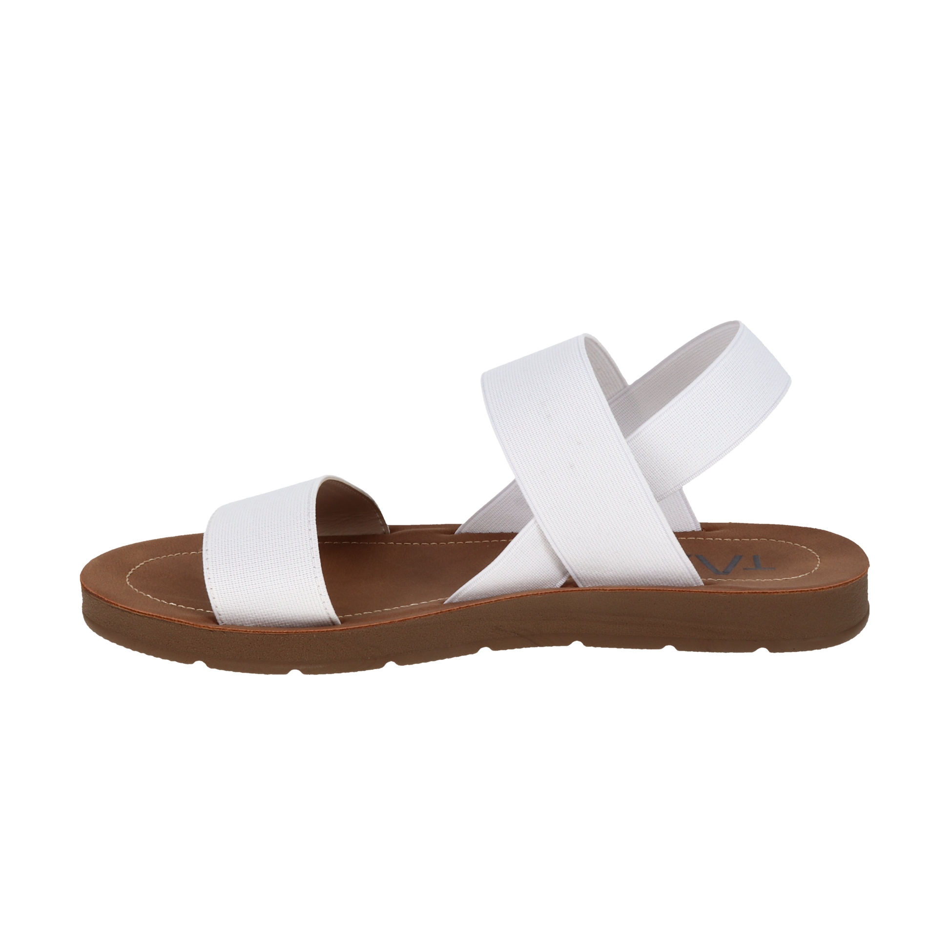 Look great running errands, hanging out at the beach, or having a casual dinner out with these women's Taxi Remi-02 sandals. Made of stretch elastic upper, these slip-on sandals have a round open toe, three straps including a slingback strap for a precise fit, soft faux leather footbed with brand detailing, and a lightweight EVA outsole. The bottom strap has polyurethane lining for a comforting feel. These sandals are vegan-friendly!
